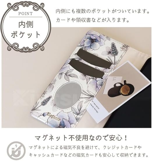 当店オリジナルブランド「Elegante」のワンポイントの花柄が大人可愛いスマホケース 手帳型が登場!ケース