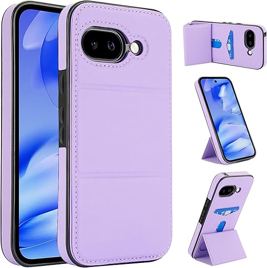 NKECXKJ Google Pixel 9aカード収納 スマホケース + グーグルピクセル9a ?化 ガラス フィルム PUレザー 折畳式 スタンド機能 携帯ケース 軽量 衝撃吸収 Case Cover Pixel9a ピクセル 9 a Google9aケース ぐー来るぴくせる9a グーグルgoole9a 財布型ケース 背面 カバー レディース(パープル) a