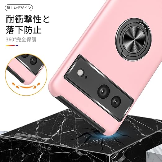 JSCOMYAP Google Pixel 7 ケース用 Pixel7 スマホケース + ピクセル7 ?化 ガラス フィルム リング付き スタンド機能 携帯ケース 耐衝撃 衝撃 スマホカバー Case Cover グーグルピクセル7 googleピクセル7 googlepixel7 けース 背面 カバー メンズ 6.3インチ (ローズゴールド) a