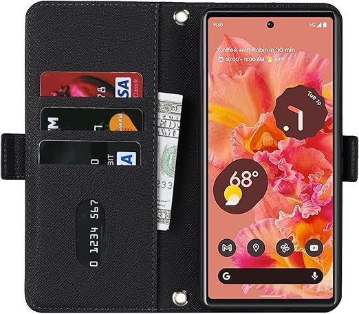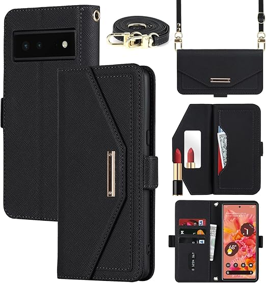 for Pixel 6A ケース 手帳型 Google pixel6a 財布型 通用 携帯カバー バッグ マグネット留め具 肩がけ 首掛け 斜め掛け カードケース SunYoo Case カード収納 横置き スタント PUレザー for Google Pixel 6A ブラック a