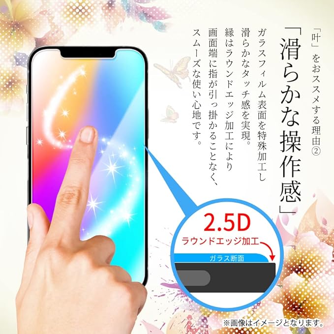 【叶kanaeスマホケースと相性保証】弊社販売のスマホケースと干渉しないように専用設計されています。※本商品は非接触型で、フィルムのフチの部分のみが画面に接着するタイプです。