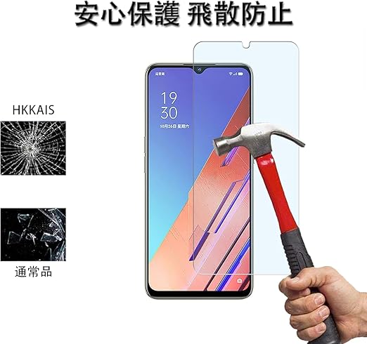 HKKAIS ブルーライトカット 目の疲れ軽減 93% OPPO Reno3 A 用 ガラスフィルム 日本製硝子採用 強化 ガラス 液晶画面 保護フィルム【2枚セット】 a
