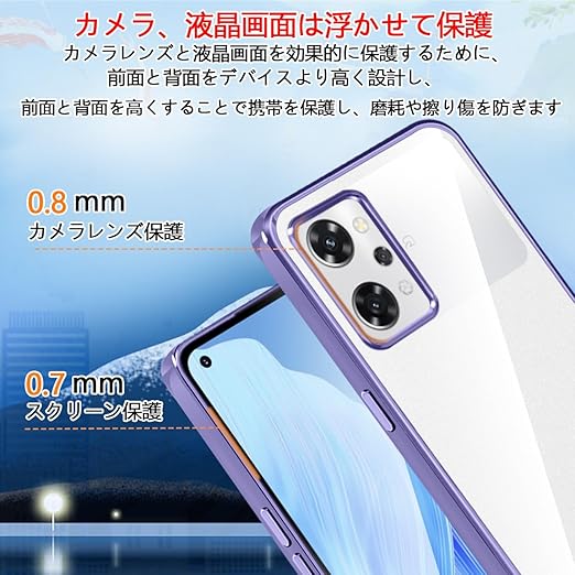 OPPO Reno9 A ケース OPPO Reno7 A ケース クリア OPG04 耐衝撃 カバー オッポ リノ9 A スマホケース ストラップホール付き メッキ加工 衝撃吸収 軽量 薄型 透明 TPU 携帯ケース (パープル) a
