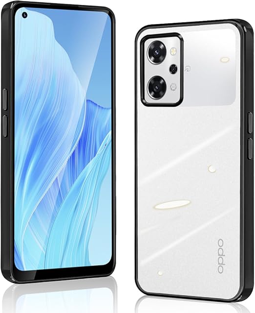 OPPO Reno9 A ケース OPPO Reno7 A ケース クリア OPG04 耐衝撃 カバー オッポ リノ9 A スマホケース ストラップホール付き メッキ加工 衝撃吸収 軽量 薄型 透明 TPU 携帯ケース (ブラック) a