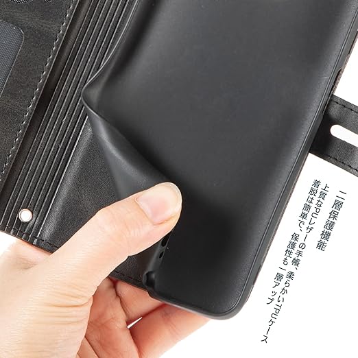 ❶耐衝撃性: 耐熱性と柔軟性を誇る上質なPUレザーで作られ、手触り良い、落下時の衝撃を効率的よく吸収できるようにケースの各コナーの裏側が設計されています。丈夫でほど良い厚みで、落としてもスマホをきちんとお守れます。