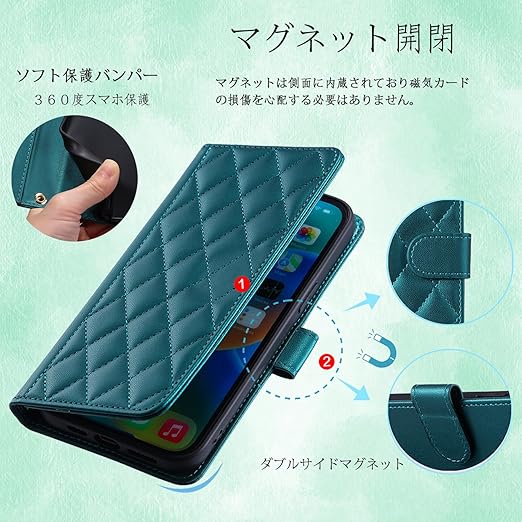 【高品質素材及び設計】メイン素材に高質柔軟のPUとTPU素材を使用しているため、新品特有の嫌な匂いはほとんどありません。手触りが良く、キルティングの設計は控えめでエレガントです。商品はさまざまなニーズに沿った6色展開となっております。 ブラック、ゴールドピンク、パープル、ミントグリーン、グリーン、