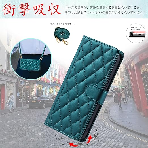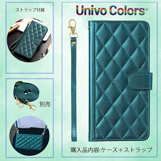 UnivoColors OPPO A79 5G キルティングレザー調 手帳型ケース エレガント 高質PU マグネット開閉式 カード収納機能 スタンド機能 液晶全面保護 レンズ保護 ストラップ付属(グリーン) a