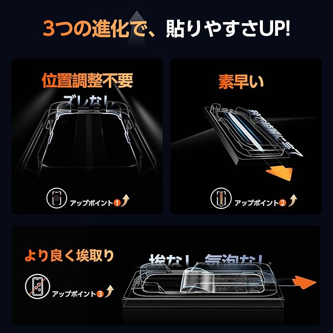 【業界革命】引くだけ自動貼り!気泡ゼロ・位置ズレ完全解決 一体化ガイドボックスにセット→シートを引くだけの超簡単装着。 フルカスタマイズ設計でピタリ位置決め。初心者でも失敗率0%、気泡・ホコリを根絶。 万が一の調整可能(※シート引っかかり時は再調整可)。