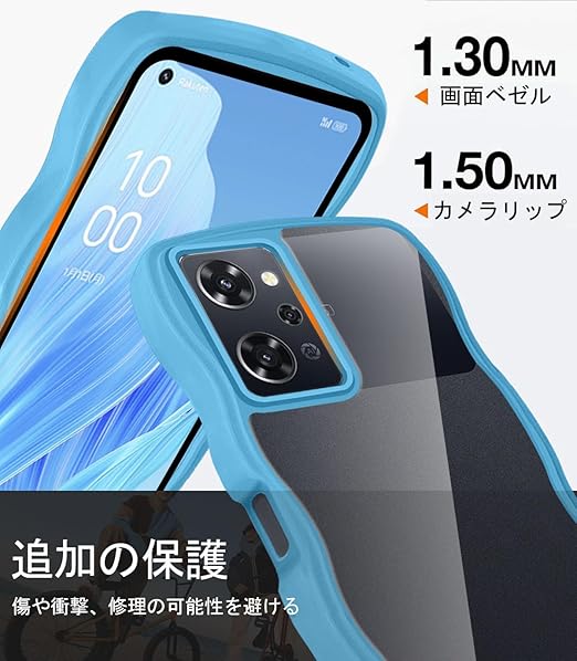 クリア OPPO Reno9 A/OPPO Reno7 A ケース かわいい 波状フレーム うねうね 耐衝撃 OPG04 スマホケース 滑り止め 人気 可愛い カバー 落下防止 ワイヤレス充電対応 (ブルー) a