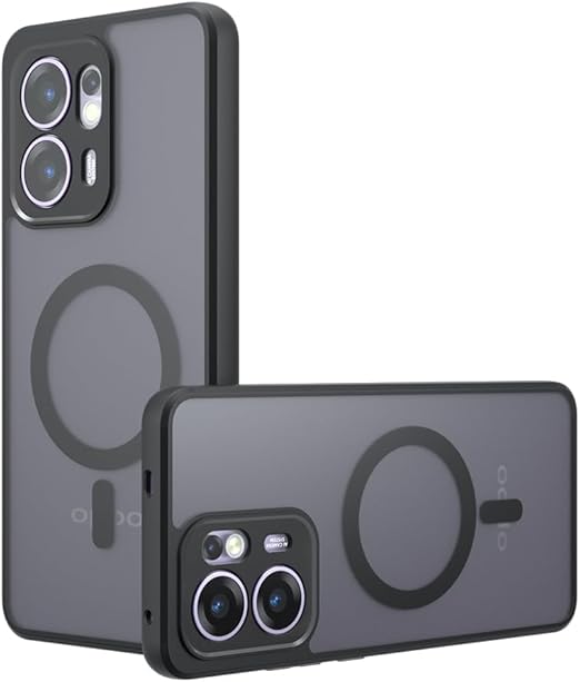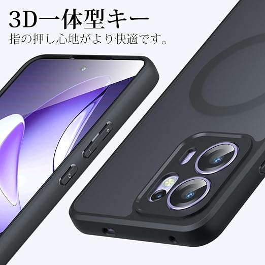 【TIFIYA】For OPPO Reno13 A 用 ケース マグネット搭載 TPU+PC 米軍MIL規格 oppo reno13 a ケース 耐衝撃 指紋防止 ワイヤレス充電 落下防止 スマホケース 傷つけ防止 黄ばみなし 耐久性 reno13 a カバー 半透明(ブラック) a
