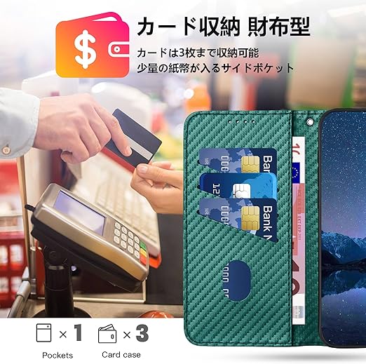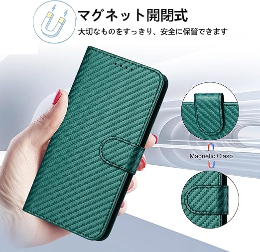 【上質な素材】このケースの外装は高品質のPU素材とカーボンファイバーの質感で作られており、手に馴染み、傷防止、指紋防止、優れた熱と衝撃吸収性を持っています。内側はソフトなTPU素材で携帯電話を保護し、着脱も簡単です。また、ケースは携帯電話を360°保護し、カメラレンズはスクリ