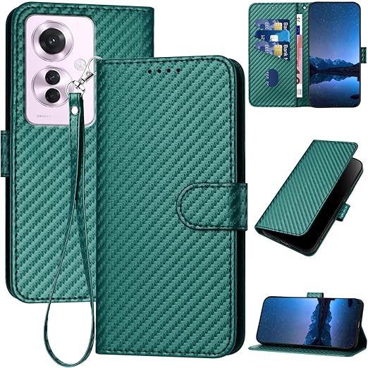 Gedurya OPPO Reno11 A ケース 手帳型 オッポ レノ11A スマホケース 炭素繊維ブレイドスタイル 肌触り良い OPPO Reno 11A ケース 携帯カバー マグネット開閉式 スタンド機能 軽量 薄型 OPPO Reno11 A 5G ケース 手帳型 指紋防止 人気 上質 OPPO Reno11 A 携帯ケース 全面保護 財布型 便利 - グリーン a
