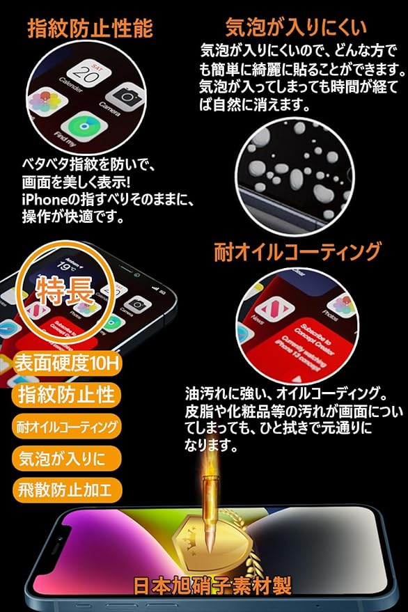 対応 iPhone 17e/16e/14/13/13Pro ガラスフィルム【360°覗き見防止】对応 iPhone 17e/16e/14 フィルム のぞき見防止【秒で貼り付け/ガイド枠付き/指紋防止 ケースに干渉しない】日本旭硝子素材製 硬度10H 耐衝撃 強化保護フィルム アイフォン17e/16e/14 /あいふおん13/13Pro フィルム 覗き見防止 -6.1インチ