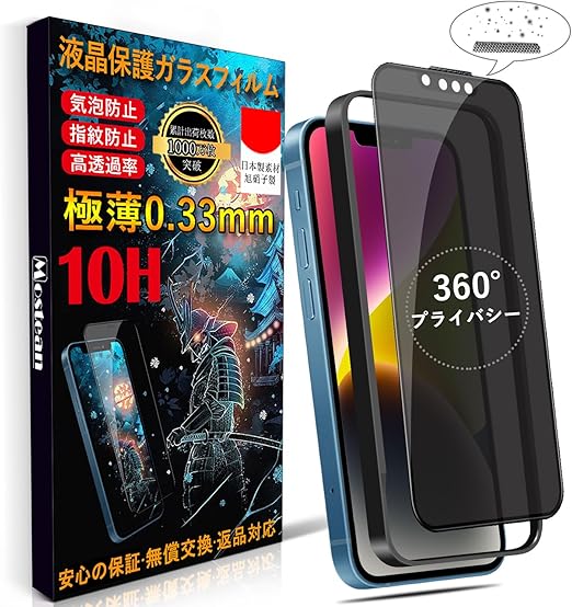 Mostean iPhone 17e/16e/14/13/13Pro ガラスフィルム【360°覗き見防止】 iPhone 16e/14 フィルム のぞき見防止【秒で貼り付け/ガイド枠付き/指紋防止 ケースに干渉しない】日本旭硝子素材製 硬度10H 耐衝撃 強化保護フィルム アイフォン16e/14 /あいふおん13/13Pro フィルム 覗き見防止 -6.1インチ a