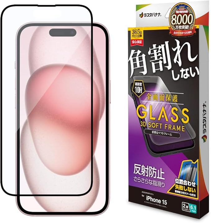 ラスタバナナ ガラスフィルム iPhone15 2眼 専用 全面保護 アンチグレア 反射防止 角割れしない 0.25mm 10H ST3878IP361 a