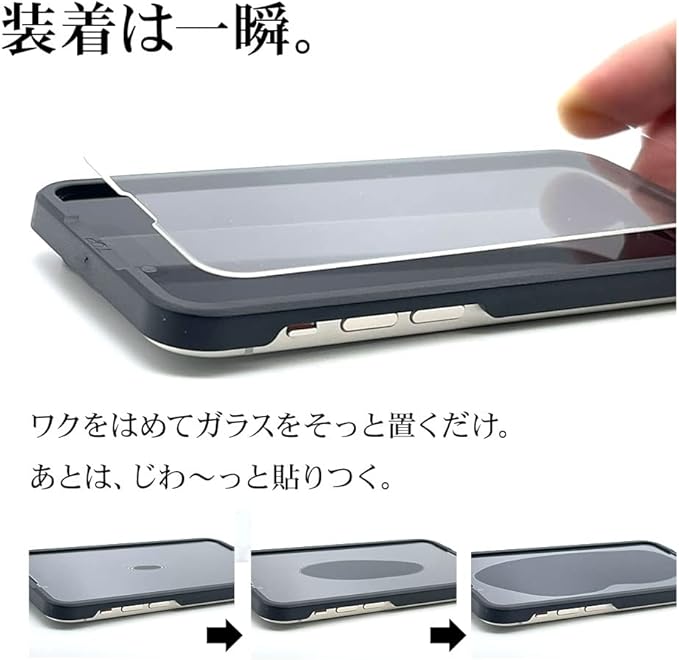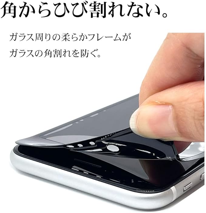 【柔軟PETフレーム採用】柔らかい素材のPETフレームと傷に強いガラスを一体化。ガラス周囲の柔らかいPETフレームが角からの落下や衝撃によるガラスの角割れを防ぎます。
