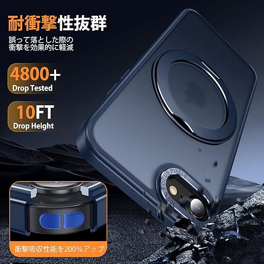 iPhone8 / iPhone SE2 / iPhone SE3 用 ケース Magsafe対応 ワイヤレス充電 360°回転スタンド 縦横両対応 Gunwon スマホケース 米軍規格 耐衝撃 半透明 マット感 マグセーフ 防指紋 リング マグネット搭載 アイフォン8/se2 /se3 用 カバー 「ブルー」 a