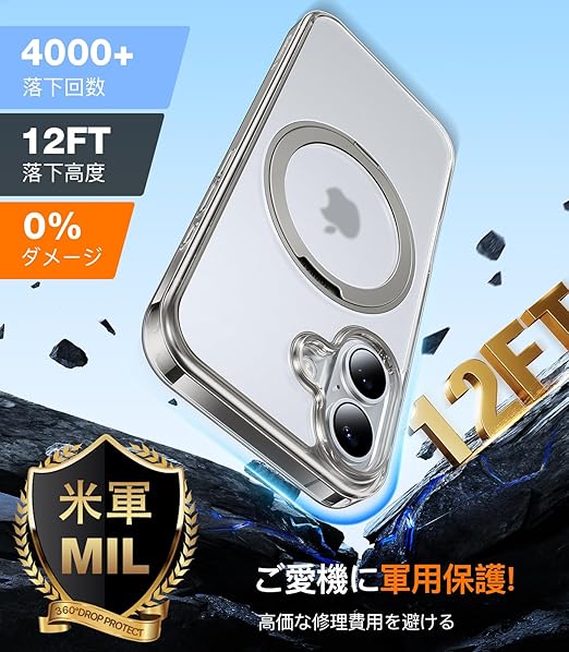 【多機能360度回転スタンド・O型リング創始者】TORRAS iPhone16 用 ケース縦横両対応 ハルバッハマグネット搭載 MagSafe対応 米軍MIL規格耐衝撃 リング 指紋防止 黄変防止 マット マグセーフ対応 レンズ保護 両眼 いphone16 用 ケース 6.1インチ「Ostand R」チタングレー(クリアグレー) a