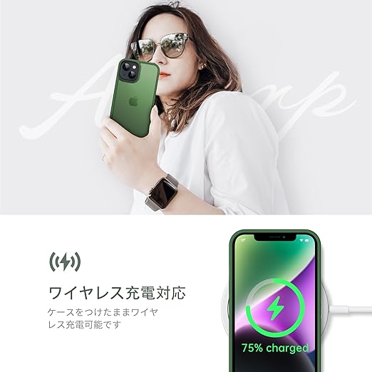 Anqrp iPhone 14 Plus 用 ケース 半透明 耐衝撃 滑り止め 米軍MIL規格 指紋防止 マットケース ストラップホール付き ワイヤレス充電対応 スマホケース アイフォン 14 Plus カバー 6.7インチ グリーン a