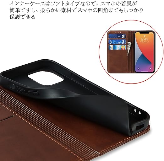 iPhone13 ケース 手帳型 アイフォン13 ケース アイホン 13ケース iPhone 13 ケース アイフォン13 ケース アイフォン 13 カバー アップル アイホン13 携帯ケース スマホケース 手帳型 適用 case iCoverCase 合成皮革 内蔵マグネット ケース 手帳型 スマホケース 携帯カバー カード入れ スタンド機能 落ち着いた色 レトロ ダークブラウン a