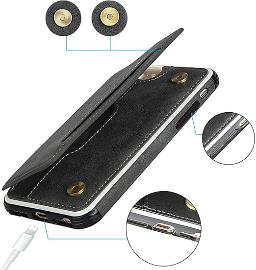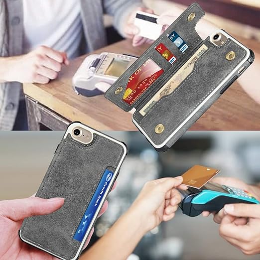 Pelanty iPhone SE 第3世代 2022 ケース iPhone SE 第2世代 2020 ケース iPhone 7 iPhone 8 ケース 縄掛け アイフォン6/ iPhone 6s ケース 4.7インチ 通用 背面 手帳型 PUレザーケース IC カード収納 スタンド機能 ボタン磁気 多機能 携帯カバー 軽量 耐衝撃 滑ストラップ スマホケース 全面保護 グレー a