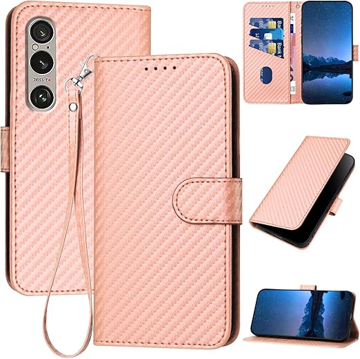 Gedurya Xperia 1 VI ケース 手帳型 エクスペリア1 vi スマホケース 炭素繊維ブレイドスタイル 肌触り良い SO-51E ケース SOG13 携帯カバー マグネット開閉式 スタンド機能 軽量 薄型 Xperia1 VI ケース 手帳型 指紋防止 人気 上質 Xperia 1 第6世代 SO51E 携帯ケース 全面保護 財布型 便利 - ピンク a
