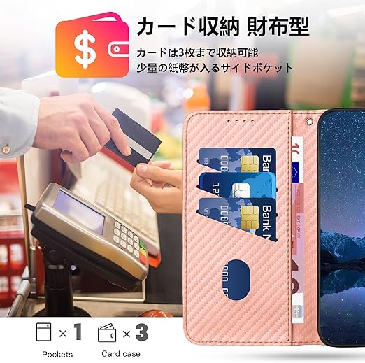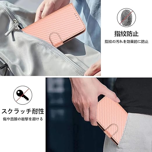 【上質な素材】このケースの外装は高品質のPU素材とカーボンファイバーの質感で作られており、手に馴染み、傷防止、指紋防止、優れた熱と衝撃吸収性を持っています。内側はソフトなTPU素材で携帯電話を保護し、着脱も簡単です。また、ケースは携帯電話を360°保護し、カメラレ