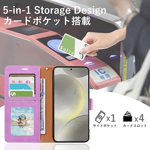TOMEYOUCASE iPhone 16E 用 ケース 手帳型 人気おしゃれ 無地 アイフォーン16e 手帳型スマホケース 男女兼用 4つカード収納 スタンド機能 シンプル 軽量 財布型 カバー [RFIDブロッキング] 高級PUレザー 手触り良い シンプル マグネット留め具式 耐衝撃 全面保護 携帯ケース iPhone SE 2025 用 保護ケース(パープル/紫) a