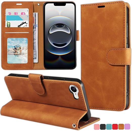 TOMEYOUCASE iPhone 16E 用 ケース 手帳型 人気おしゃれ 無地 アイフォーン16e 手帳型スマホケース 男女兼用 4つカード収納 スタンド機能 シンプル 軽量 財布型 カバー [RFIDブロッキング] 高級PUレザー 手触り良い シンプル マグネット留め具式 耐衝撃 全面保護 携帯ケース iPhone SE 2025 用 保護ケース(ブラウン) a