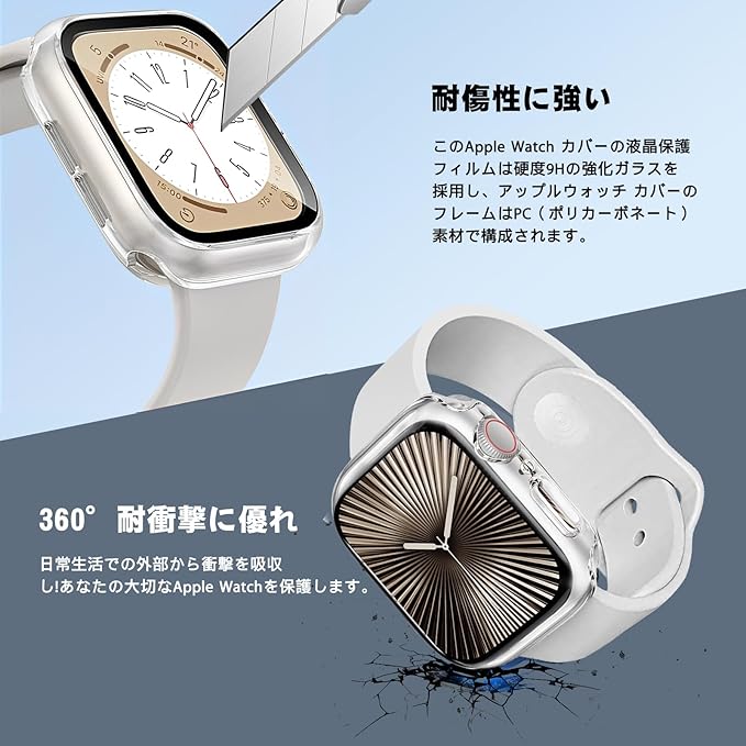【360度防水設計】 CAERMA for アップルウォッチ カバー Series 10/9/8/7/SE2/SE/6/5/4 40mm 超薄型 for Apple Watch カバー 2in1防水 PC素材 硬度9H強化ガラス 高透過率 指紋防止 耐衝撃 全面保護 for Apple Watch ケース クリア a