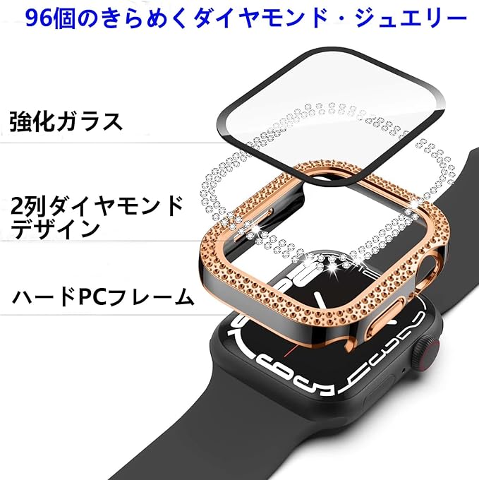AIYYXX アップルウォッチ カバー40mm 41mm 42mm 44mm 45mm 46mm対応 アップルウォッチ 本体 ダブルダイヤモンド ガラスフィルム付 超薄型 PC+ガラス素材 高透過率apple watch カバーキズ防止 簡単に取り付け・取 全面保護 apple watch ケース(40mm,ダイヤモンド・ブラック&シルバー) a