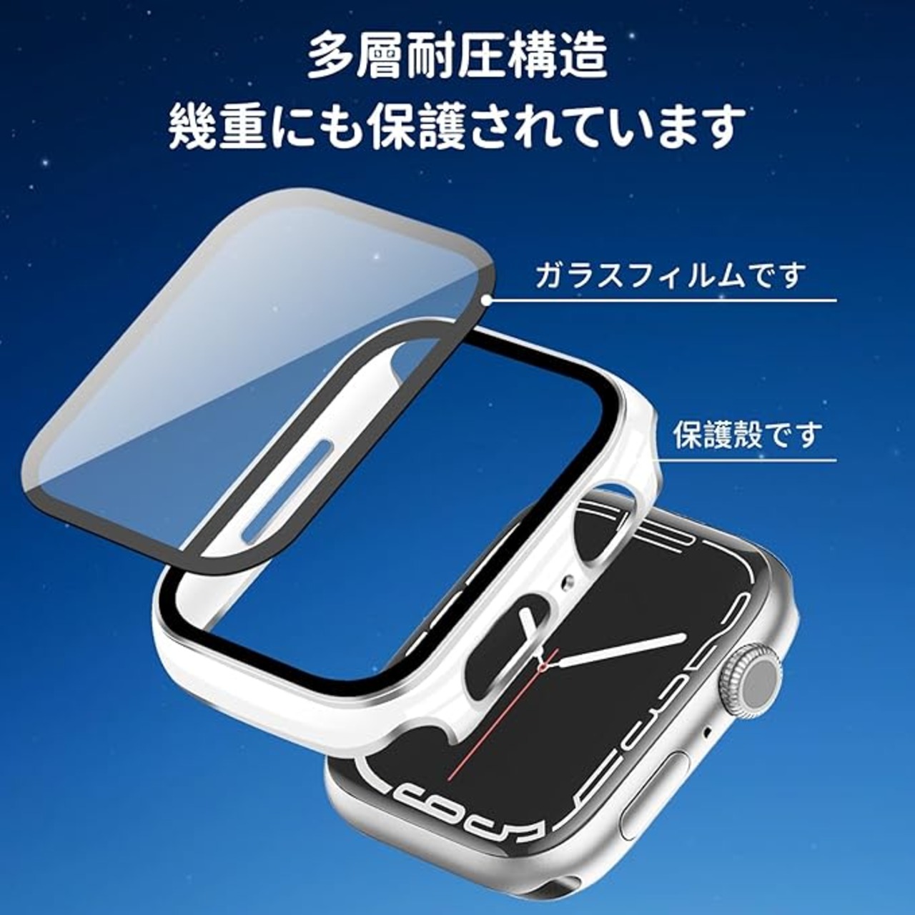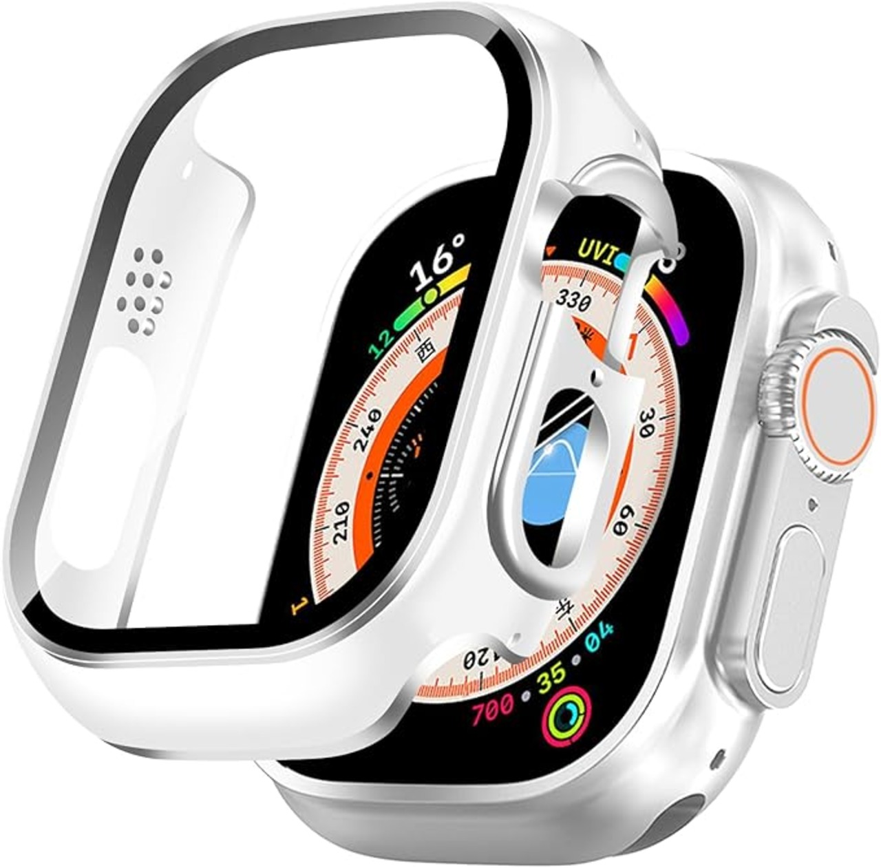 【2025改良ケース】TEMEDO 対応 Apple Watch ケース Ultra 2/1 49mm Apple Watch カバー メッキ加工 全面保護 二重構造 アップルウォッチ カバー 高耐久 高透過率 装着簡? アップルウォッチ ケース PC素材 ガラスフィルム 一体型 光沢のホワイト+シルバー a