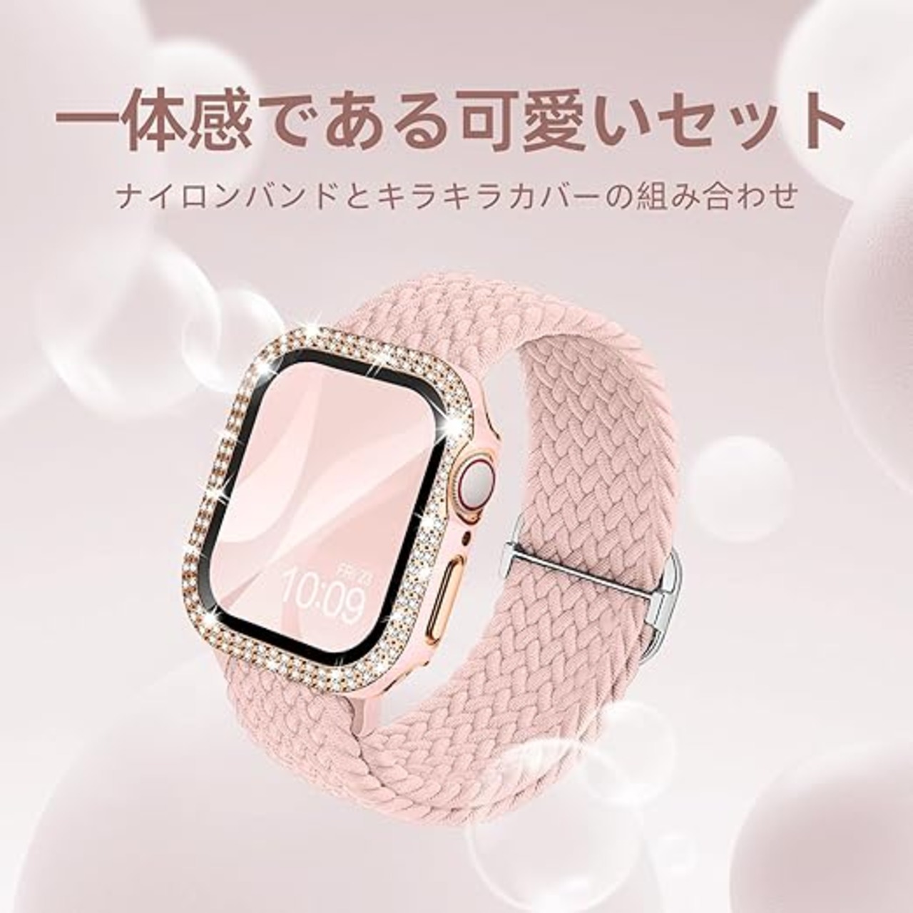 「おしゃれな色合い」日本で人気色味の互換用アップルウォッチ 編み込み バンドと同色のキラキラ カバーをセットにして、スタイルが完璧に馴染みしていて、渾然一
