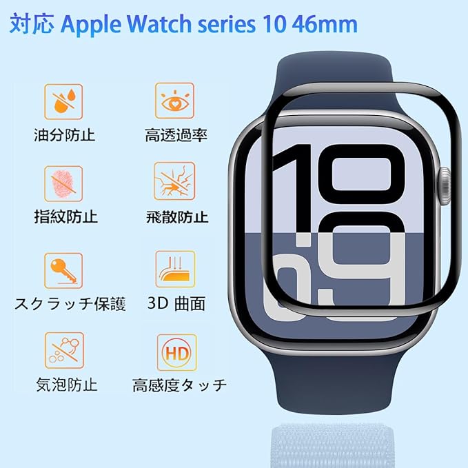 【3枚セット】 対応 Apple Watch Series 10 46mm フィルム ガラスフィルム 3枚 PET複合材 炭素繊維 高透過率 対応 Apple Watch 10 46mm 保護フィルム 3D曲面カバー 対応 アップルウォッチ Series10 液晶保護フィルム キズ防止 耐衝撃 飛散防止 全面保護 3D Touch対応 高感度タッチ 気泡ゼロ 自動吸着 貼り付け簡単 a