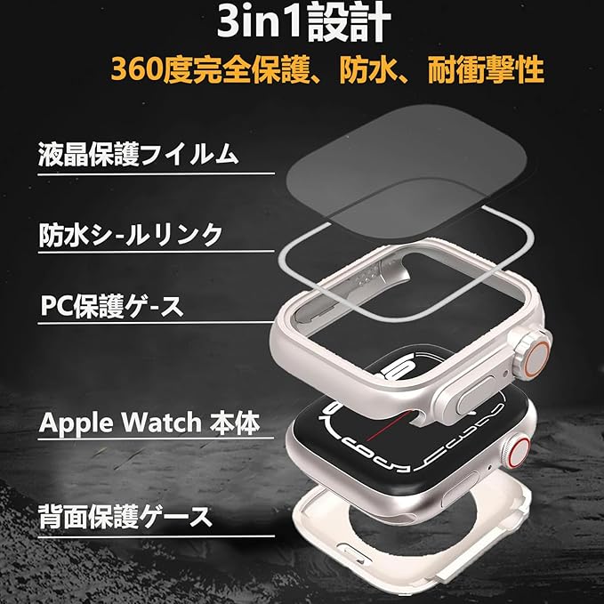 AIYYXX アップルウォッチ カバー 40mm 41mm 42mm 44mm 45mm 46mm対応 数秒でUltra一体型 アップルウォッチ保護ケース+防水ゴムリング+背面ケースの3 in 1デザイン 360°防水 全面保護 耐衝撃 高透過率 装着簡単 apple watch カバー(Series 6/5/4/SE2/SE,44mm,スターバースト) a