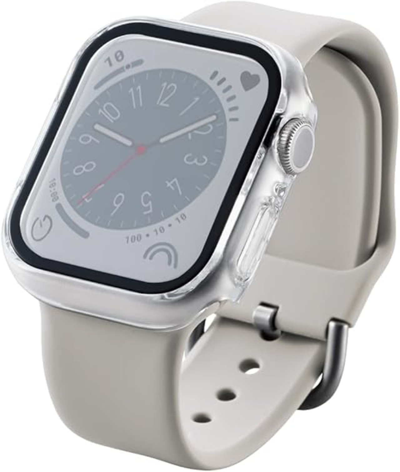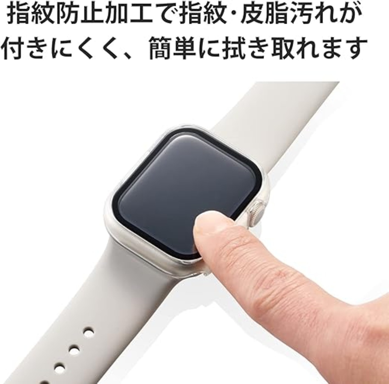 表面硬度10HのGorilla(R)ガラスと耐衝撃性の高いポリカーボネート素材の2重構造で、Apple Watchの液晶部及び側面部を保護します。