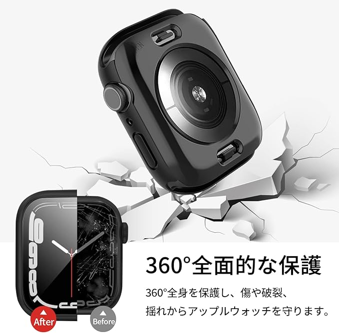 BELIYO Apple Watch ケース 45mm 対応 アップルウォッチ カバー 防水 一体型 360 Apple Watch カバー 全面保護 二重構造 アップルウォッチ ケース PC素材 日本旭硝子材 キズ防止 軽量 強化ガラス Apple Watch Series 9/8/7 アップルウォッチ9/8/7 対応(45mm,ブラック) a