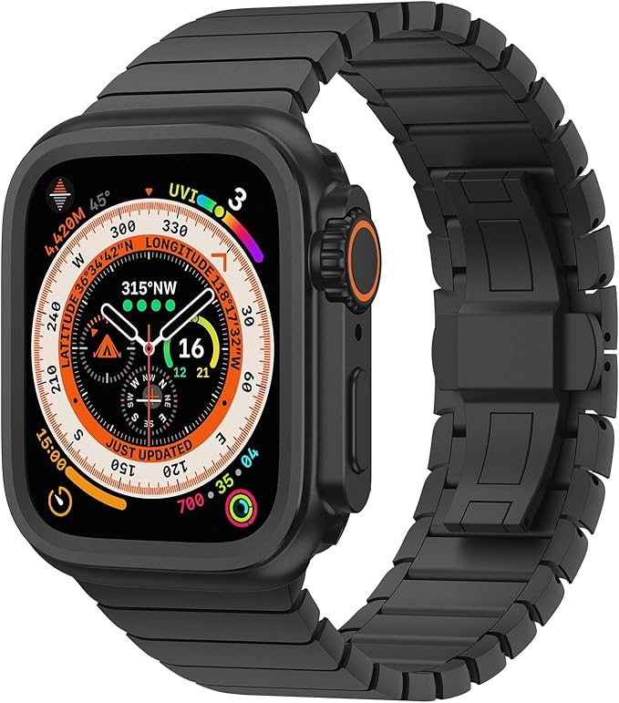amBand 3 in 1 メタルケース Apple Watch Series 6/SE2/SE/5/4 44mmに対応 数秒でUltra/Ultra2に変身でき アップグレード ウルトラの見た目 W1 保護カバー バンパー プロテクター 裏蓋付き ブラック a