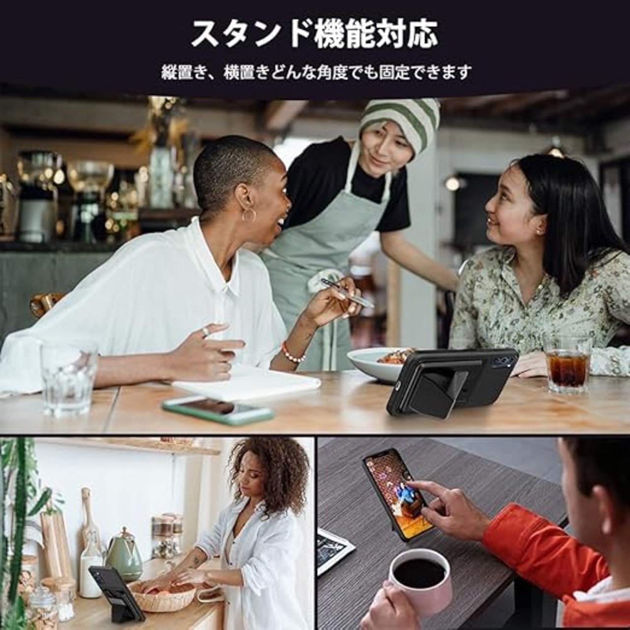 【 グリップモード 】メッセージ送信、動画視聴、ビデオ通話、自撮り、旅行、ランニングやエクササイズ、料理など多くのシーンで、安定したスマホ操作がお楽しみ