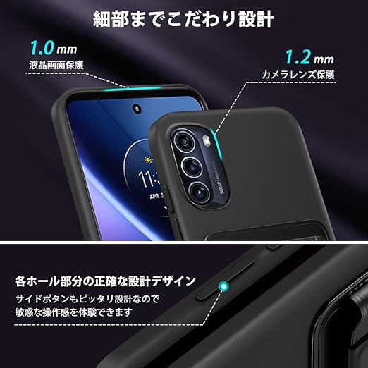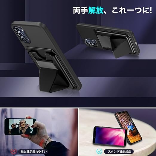 モトローラ moto g52j 5G II ケース 対応 カード収納 スタンド付き モト g52j 5G スマホケース シリコン バンド付き スタンド機能 耐久 滑り止め 黑 a