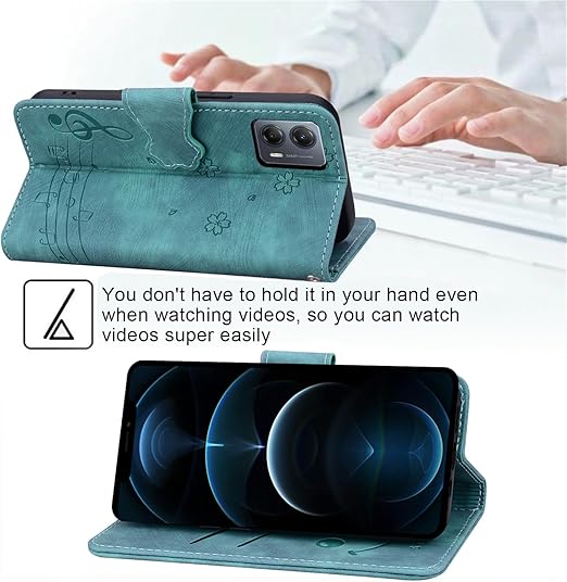 TEDTIKJT Moto G53J 5G 対応 motorola 高?PU レザー ドコモ moto g53j 5G エレクトロニクス Moto G53Y 5G ケース カバー 手帳型 カード収納 サイドマグネット スタンド機能付き スマホケース 財布型 耐衝撃 横置き機能 肌触り良い 肌感レザー 耐摩擦 音楽子猫のパターン 保護ケース 適用 Moto G53J 5G / G53Y 5G 緑 a