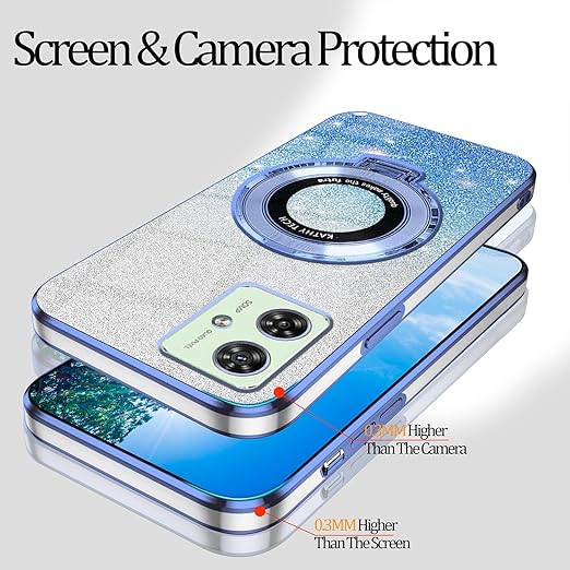 Anlalishスマホケースと互換性があります Moto G64 5G ケース可愛い Motorola Moto G64 スマホカバーリング耐衝撃 ダブルレイヤー透明シャイニング携帯ケース持っているカメラ保護 指紋防止 薄型カード (青) a