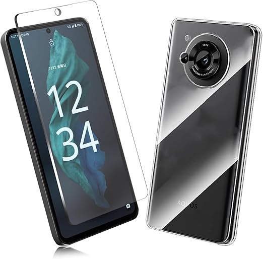 【対応機種】セット内容 :FOR AQUOS R7 用の 強化ガラスフィルム*1枚+クリアケース*1。 画面部分表面硬度9Hのガラスフィルムで、万が一フィルムが破損した場合でも、ガラスが飛び散らず張り付いた状態になります。