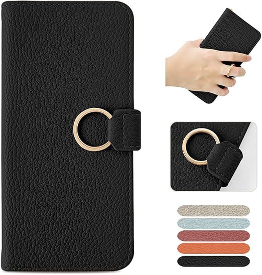 MAGICASE For arrows We2 ケース 手帳型 おしゃれ リング付き アローズ F-52E ケース 手帳型 かわいい 女性 arrows we2 f-52e ケース シンプル 美しい 財布型 エレガント 人気 ストラップホール付き マグネット式 カード収納 スタンド機能 高級PU 肌感レザー 耐衝撃 レディース 手作 落ち着いた色 レトロ(ブラック) a