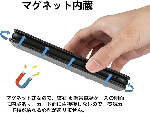 ①【上質な素材】外部は上質な合皮レザー素材を採用しており、放熱性が良く、傷や埃を防ぐことができます、滑りにくく、指紋、油分などもつきにくく。インナーケースは弾力性の柔軟黒TPU素材を採用しており、角までしっかり保護できるケースです、柔軟性があり本体への装着脱着も簡単です。衝撃吸収機能あり、しっかりの二重保護でお携帯を守り抜きます。