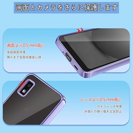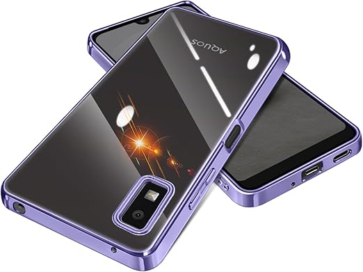 AQUOS wish3 ケース クリア ウィッシュ3 カバー 透明 スマホケース 耐衝撃 黄変防止 SH-53D A302SH SH-M25 A303SH 対応 TPU 保護カバー メッキ加工 ソフトケース 滑り止め 耐久性 ストラップホール付き アクオス ウィッシュ3 携帯ケース(パープル) a