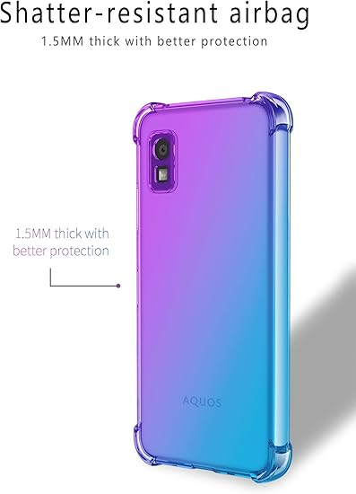 AQUOS wish3 SH-53D A302SH対応ケース グラデーションカバー AQUOS wish3 SH-53D用スマホ保護カバー 四角エアクッション 耐衝撃 AQUOS wish3 SH-53D A302SH SH-M25用クリアTPU ケース カバー AQUOS wish3 SH-53D A302SH SH-M25 適用ソフト TPU ケース ピンク&ブルー a