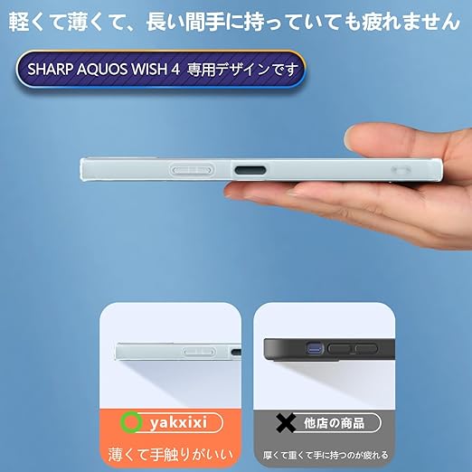 操作性を損なわない専用設計:AQUOS wish4 にぴったりフィットするよう設計し、ケースを装着していない時と操作感は変わりません。また、ケース装着し