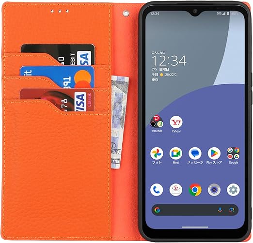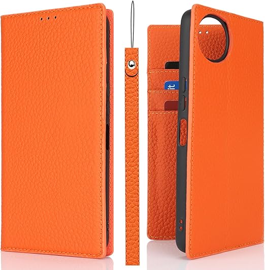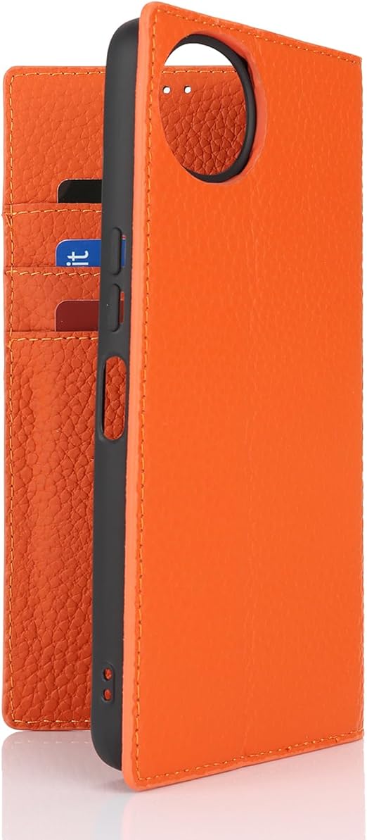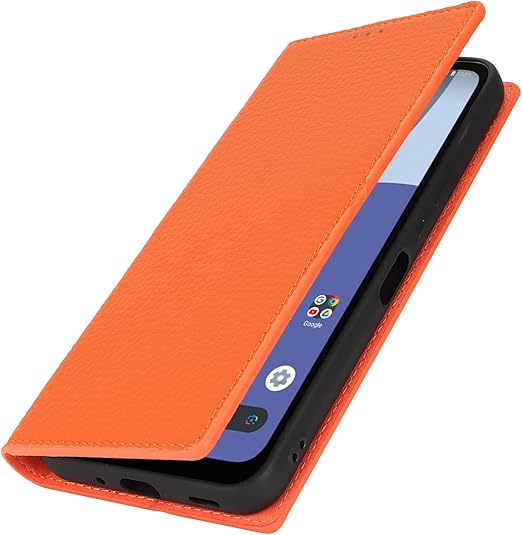 Eastwave Aquos Wish4 ケース 本革 牛革 SH-52E A402SH ケース 手帳型 カバー AQUOS WISH 4 SH-52E A402SH SH-M27 対応 手帳 本革 柔らかい 本皮 スプラットホール付き スプラット同梱 内蔵マグネット - オレンジ a