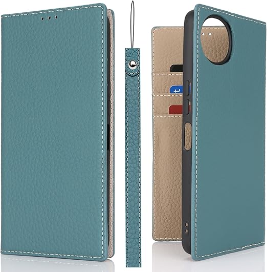 Eastwave Aquos Wish4 ケース 本革 牛革 SH-52E A402SH ケース 手帳型 カバー AQUOS WISH 4 SH-52E A402SH SH-M27 対応 手帳 本革 柔らかい 本皮 スプラットホール付き スプラット同梱 内蔵マグネット - ライトブルー a